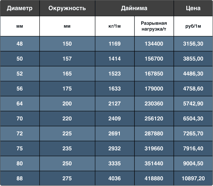 Высокая прочность и износостойкость. Не теряет рабочих качеств во влажном состоянии. Отсутствие крутящего момента в канате.